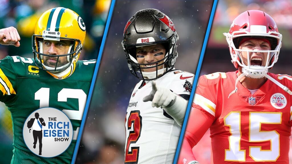 Rich Eisen lists his Top 5 NFL QB’s You Want for a Must-Win Game among the Buccaneers’ Tom Brady, the Packers’ Aaron Rodgers, the Buffalo Bills’ Josh Allen, the Cincinnati Bengals’ Joe Burrow, and the Kansas City Chiefs’ Patrick Mahomes.